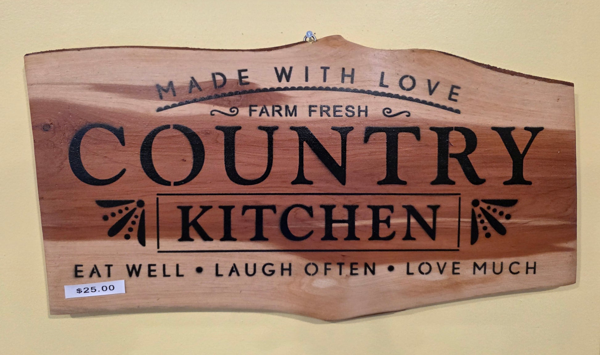 Elevate your kitchen with this rustic and charming country kitchen handmade wooden sign. Handcrafted with love, this sign adds a touch of warmth and character to your home. Transform your space with a unique and personalized touch. Bring the country charm to your kitchen today!