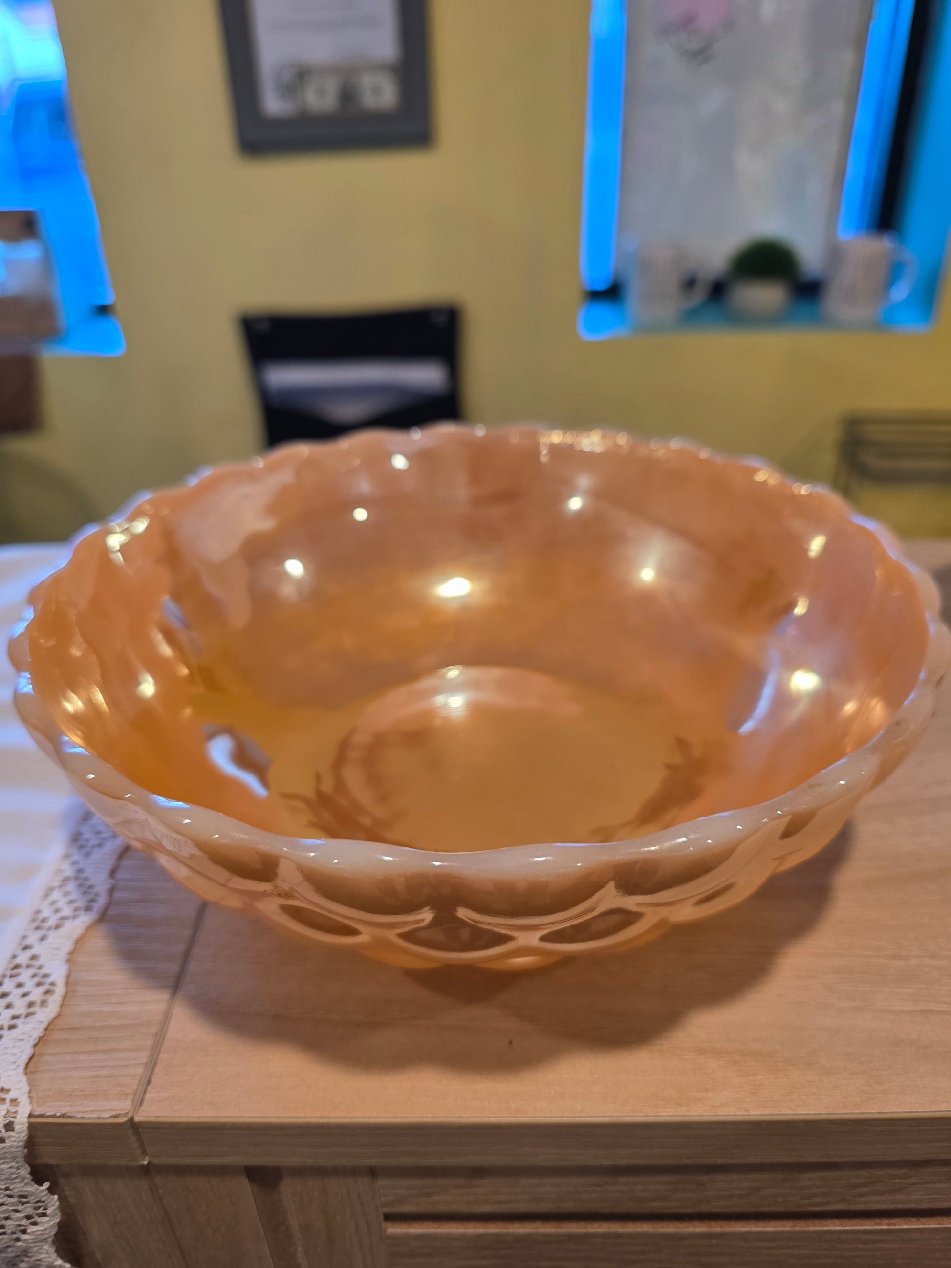 Introducing the Peach Anchor Hocking Serving Bowl, a beautifully designed and durable addition to your kitchenware collection. Made with high-quality materials, this bowl is perfect for serving your favorite dishes and adding a touch of elegance to your table. Its peach color adds a pop of color to any setting. Upgrade your dining experience with this reliable and stylish serving bowl.