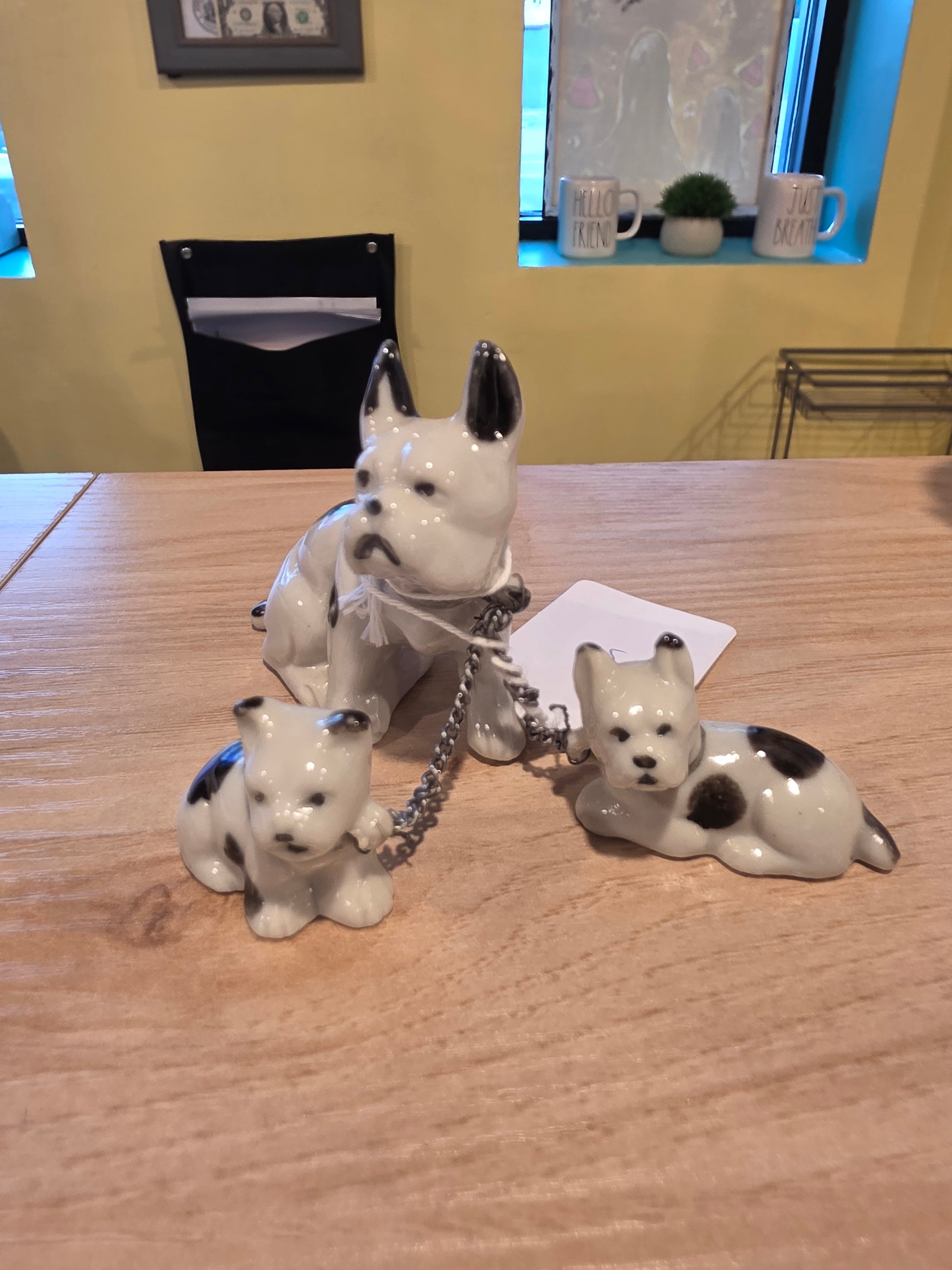 Experience the unconditional love of man's best friend with our Boston Terrier Chain Family. This unique and adorable set includes a mother and two puppies, all linked together by a sturdy chain. Made with attention to detail, this collectible will bring joy to any dog lover's home.