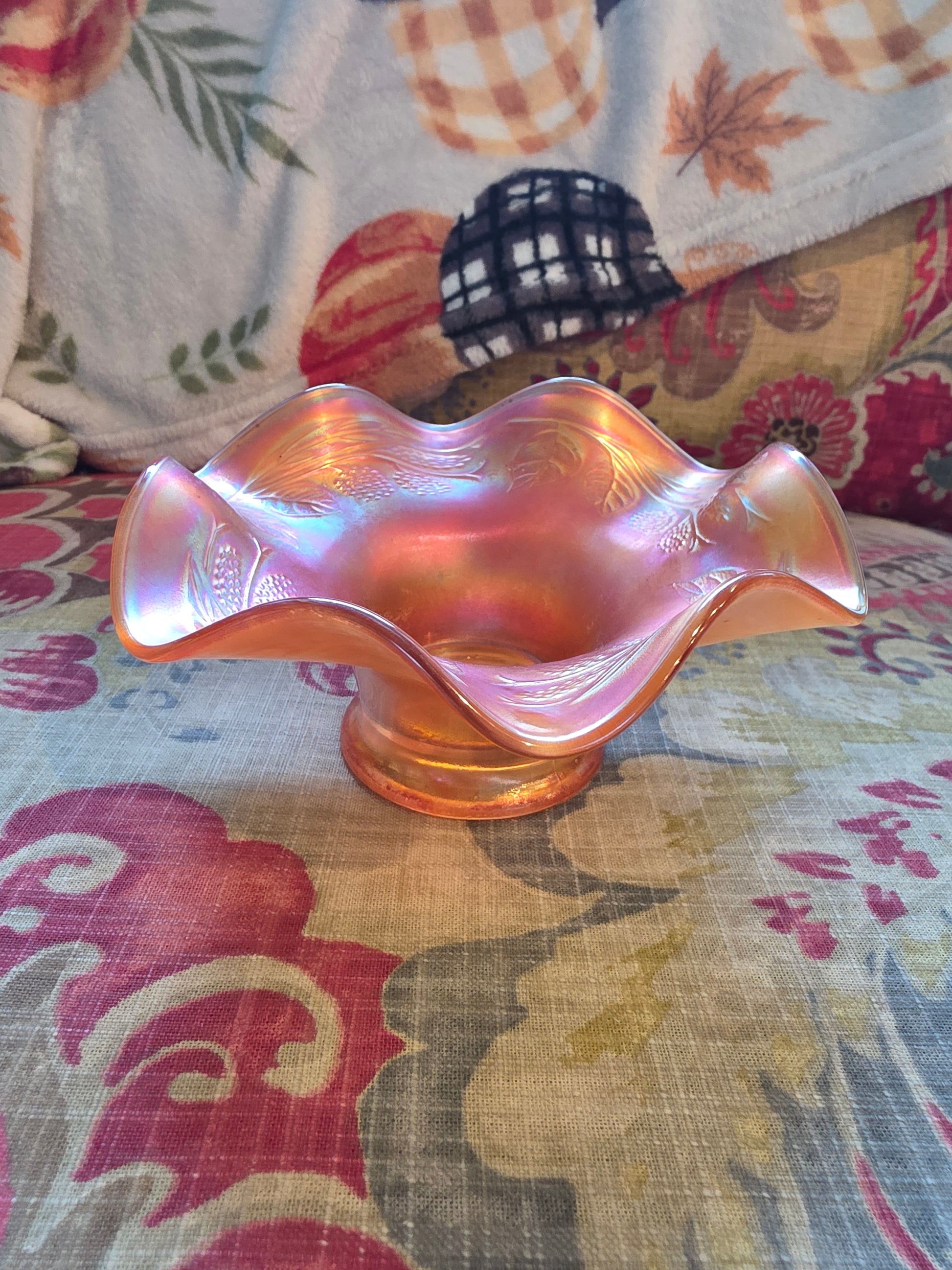 Vintage Marigold Carnival Glass Ruffled Bowl