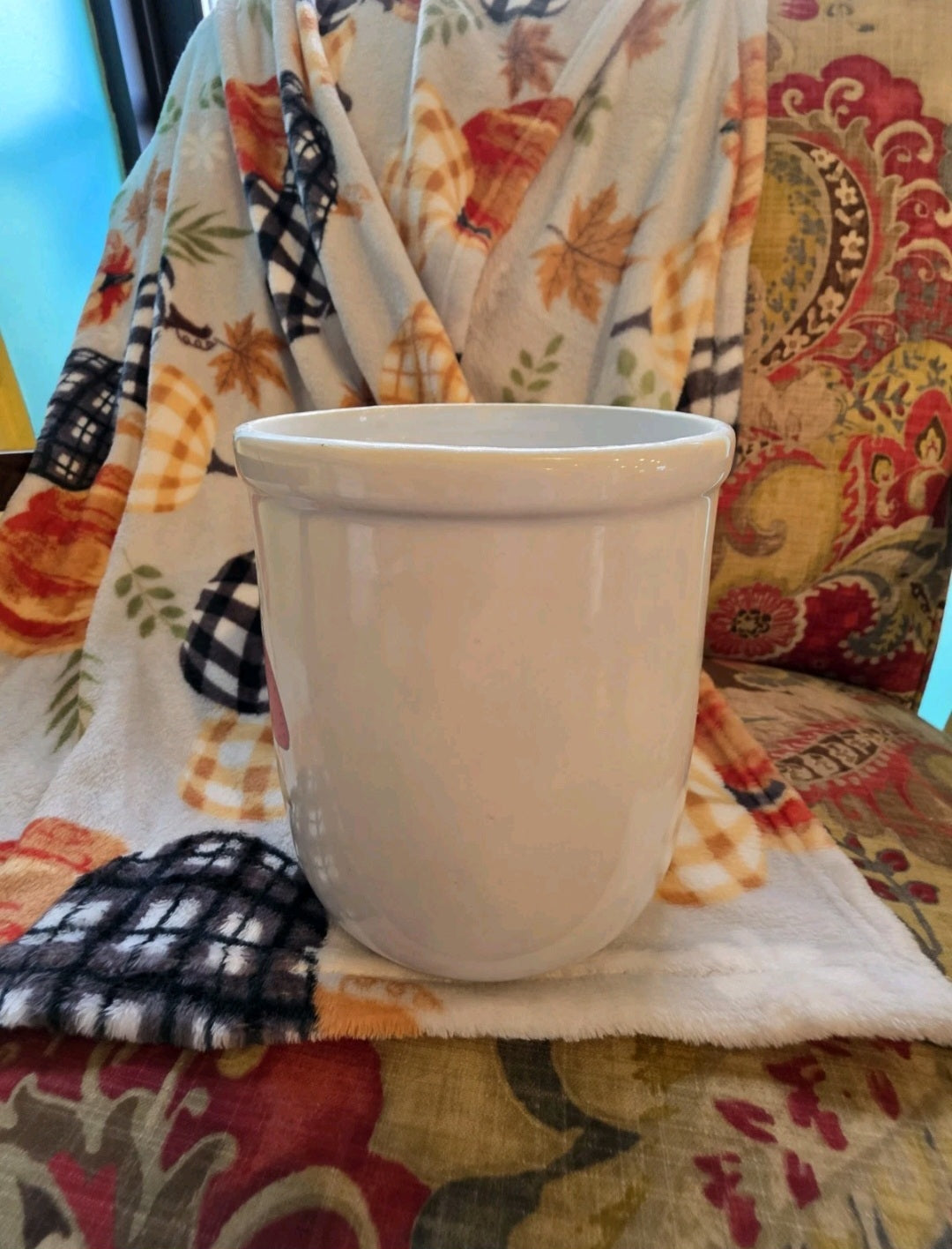 VTG McCoy USA Strawberry Fields Country L Crock Cookie Jar Utensil Holder w/Lid